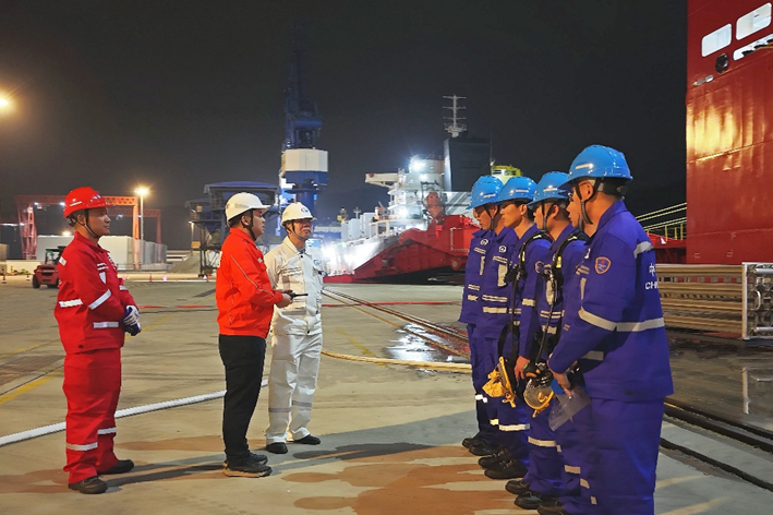 2025年,团队累计完成20多艘次新造船舶LNG燃料舱惰化、预冷、置换及加注作业,液氮气化作业4千多吨、LNG加注作业8千多吨。其中,华南首艘16000标箱集装箱船LNG燃料B型舱的“心脏”手术,堪称代表作。面对前所未有的超大容积和严苛的工艺要求,他们组建专项攻坚组,连续多日驻守船厂。他们创新采用“梯度降温+分段监控”预冷法,像呵护新生儿一样,通过实时调整低温氮气注入速率和数十个监测点,确保巨型气室温度均匀缓降至目标值。在置换阶段,他们又通过优化进气速率与多点精密取样,确保了舱内气体环境一次达标。最终,全程“零瑕疵”的作业成果赢得了船东与船厂的高度赞誉,也奠定了团队在区域内的技术标杆地位。 百日筹备:破解车对国际航行船加注协同难题 面对首次车对船加注的复合型挑战,广州公司LNG加注团队以“三个月磨一剑”的攻坚姿态启动筹备工作。这支由公司领导、部门经理、管理人员和操作工作组成了8人专业供应组,联合各方召开协调会,构建“审批-通航-应急”三位一体的联动机制,从燃料品质、设备接口到作业时序,均制定了详尽的标准与预案,确保跨单位协作无缝衔接。