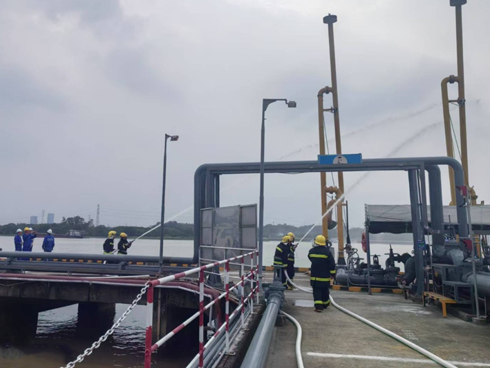 油库现场模拟“码头作业口管线法兰垫片爆裂泄漏”突发情景开展应急演练。参演人员迅速启动应急预案,完成警戒隔离、泄漏堵截清污、环境监测、伤员救助、消防灭火等环节,全过程响应迅速、处置规范。公司领导对演练效果给予肯定,并要求进一步优化应急流程,强化一线员工“第一时间处置”能力。